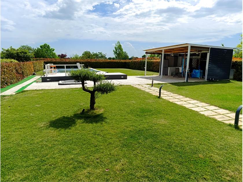 Contesto verde e riservato con oltre 1.000 mq di giardino privato finemente curato, piscina esterna, zona relax e impianto di irrigazione centralizzata.