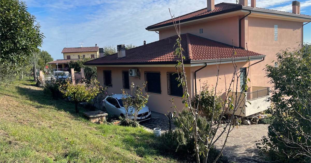 Vendesi intera proprietà composta da villa monofamiliare disposta su 2 livelli fuori terra dalle grandi dimensioni con possibilità di ospitare più nuclei familiari oltre a servizi al piano seminterrato: cantina, sgombero, locale caldaia, lavanderia ed ampia autorimessa. Il tutto è collegato da una comoda scala interna. Completa la proprietà terreno agricolo servito da pozzo irriguo di c.a 2 ettari con c.a 60 piante di ulivi e vigna. Il terreno è dotato di doppio accesso carraio indipendente. € 570.000