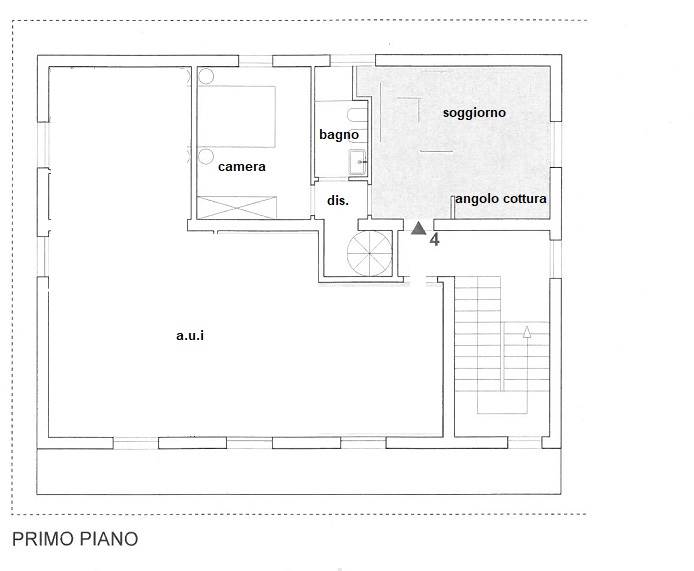 Proponiamo in vendita appartamento al piano primo facente parte di piccolo edificio di sole 4 unità abitative. L'immobile si sviluppa su due livelli interni collegati da scala interna e si suddivide in soggiorno/cucina, disimpegno, 1 camera e 1 bagno. Dal disimpegno si accede al sottotetto con 3 ambienti mansardati con un w.c. L'appartamento verrà completamente ristrutturato e dotato di impianto fotovoltaico da 3 kw, caldaia a condensazione ed infissi in PVC di ultima generazione con tapparelle elettriche. Completa la proposta un posto auto di proprietà su corte privata ed una cantinadi 28 mq al piano seminterrato. € 265.0000